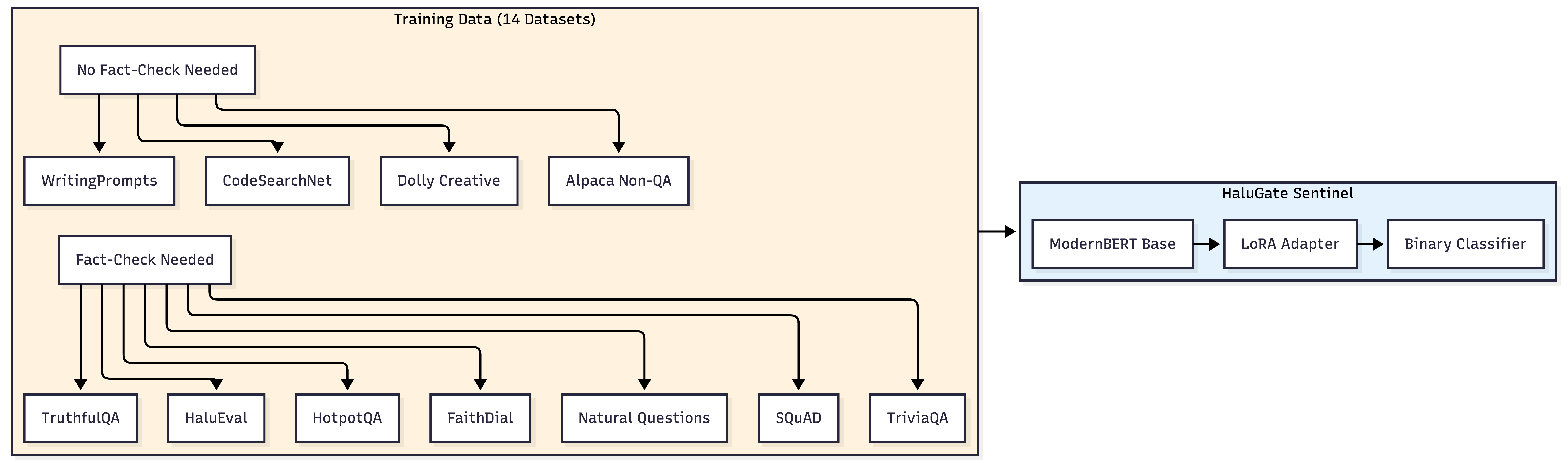 HaluGate Sentinel is a ModernBERT-based classifier that answers one question: Does this prompt warrant factual verification?