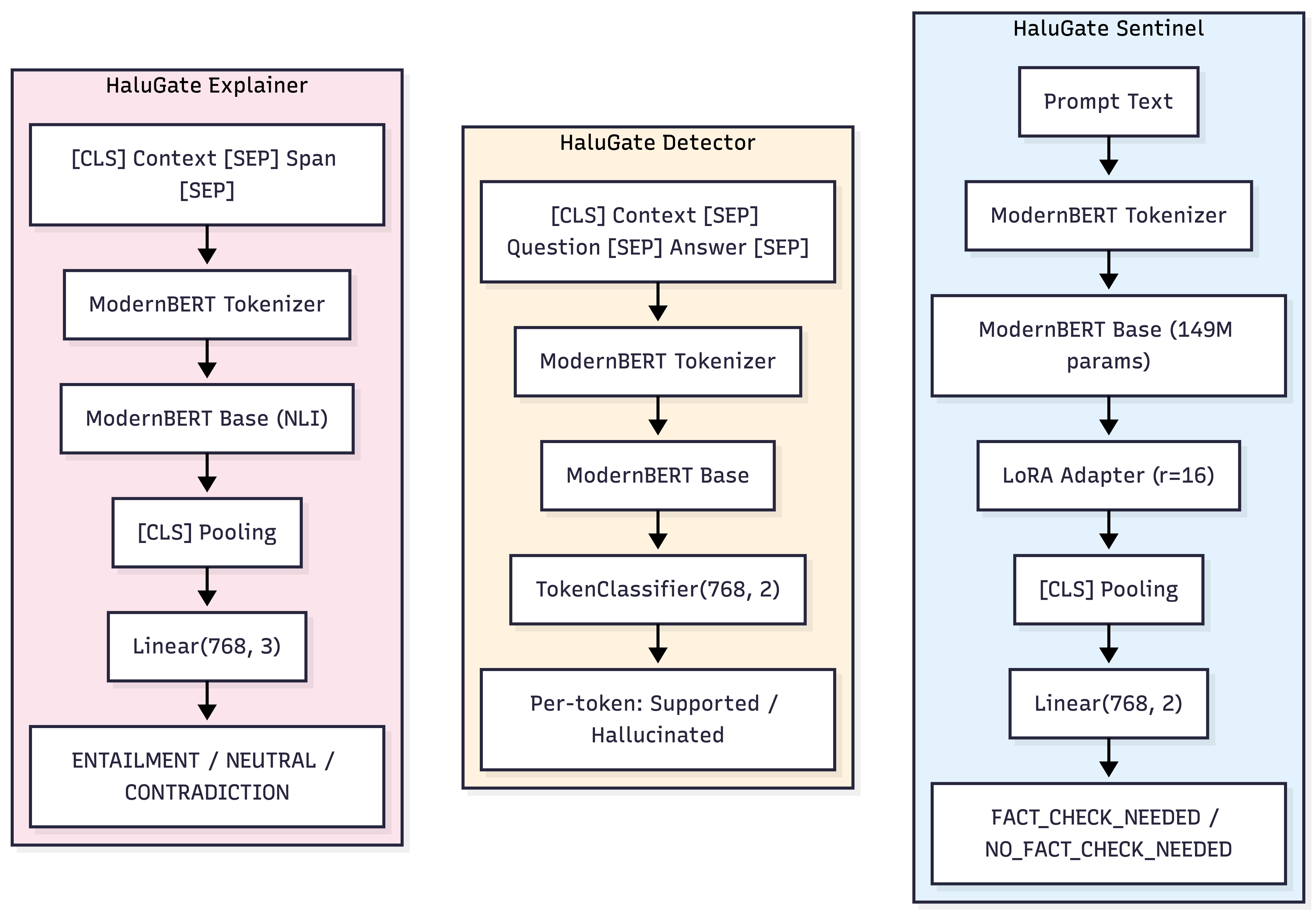 • Token-level detection architecture: Inspired by LettuceDetect from KRLabs—pioneering work in ModernBERT-based hallucination detection